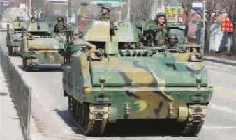 3月2日,參加美韓聯合軍演的韓國陸軍K-200裝甲車開上街頭