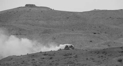 “紅軍”炮兵火力對敵前沿裝甲目標實施摧毀。程成攝