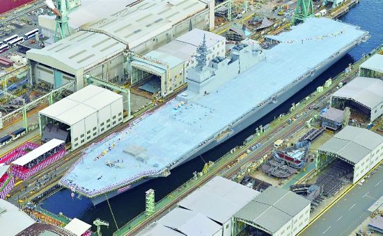 日本海上幕僚監部27日公布,“加賀”號是海上自衛隊最大的艦艇,全長248米,寬38米,滿載排水量達2.6萬噸,可搭乘470人,配備9架反潛直升機,未來也能起降自衛隊從美國采購的“魚鷹”傾斜旋轉翼飛機。據稱,“加賀”號的命名下水儀式非常隆重,彩帶環繞著巨大的船體,船體入水后還有彩球、鳴炮祝賀。“雅虎日本”網站介紹稱,“加賀”號是今年3月服役的“出云”號直升機航母的姊妹艦。盡管日本官方掩耳盜鈴地宣稱該艦為“護衛艦”,但按照國際標準,它應該被歸為直升機航母。如果日本為其配備美制F-35B垂直起降戰機,它更可搖身一變成為輕型航母。防衛省透露,“加賀”號下水后還將配備必要的裝備,預定在2017年正式服役。