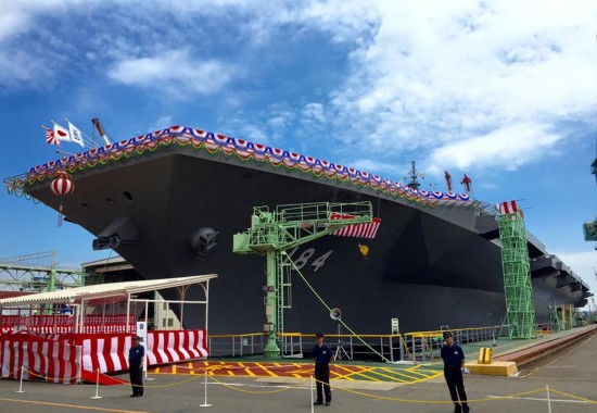 2015年8月27日下午14時,日本海上自衛隊最新型準航母DDH-184艦在橫濱船廠正式下水。該艦被命名為“加賀”號。該級別首艦“出云”號已于今年3月25日服役。