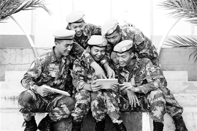 閑暇之時,平板電腦、智能手機是我赴黎巴嫩維和官兵學習教育、休閑娛樂的重要工具。葉洋萍攝