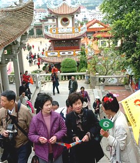 在媽祖的故鄉(xiāng)湄洲島,成千上萬臺灣信眾,不懼扁當局的恐嚇阻撓,成群結隊前來拜祭。