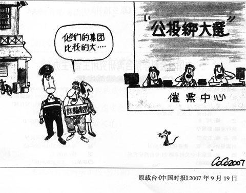 在陳水扁眼里,重要的當(dāng)然不是什么“公投”,重要的是那個(gè)“綁”字。他極力要爭“一階段”領(lǐng)投票,也絕非掛慮臺當(dāng)局的威嚴(yán)遭到地方貶損,而是這條繩子系著執(zhí)政黨在選舉中死纏爛打的大好機(jī)會(huì)。然而,僅為了領(lǐng)票的技術(shù)操作,即將問題上綱到宣布戒嚴(yán)、選舉無效、乃至撤換地方主委,不僅太不相稱,也暴露了他的慌亂和霸道;那不僅對民進(jìn)黨的選情一無助益,反而造成傷害。陳水扁必須立即吞回自己的話,原因正在于此。