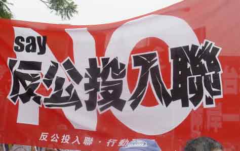 陳水扁操弄“入聯公投”遭民眾反感。圖為臺灣“反公投入聯行動聯盟”打出的巨幅標語。