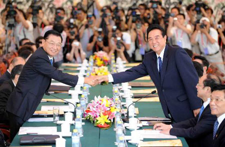 6月12日上午9時許,海峽兩岸關系協會會長陳云林與海峽交流基金會董事長江丙坤會談在北京釣魚臺國賓館開始舉行。這是時隔9年多后兩會領導人再度對話。 新華社記者 李曉果 攝