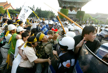 民進黨人士在陳云林訪臺期間“圍城游行”,與警察爆發多次沖突。
