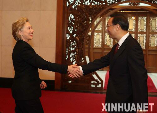 2009年2月21日 楊潔篪與希拉里舉行會談 2月21日,中國外交部部長楊潔篪在北京與美國國務(wù)卿希拉里·克林頓舉行會談。 新華社記者 劉衛(wèi)兵 攝