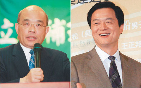 臺(tái)北縣長周錫瑋(右)民調(diào)不理想,國民黨中央有意在一個(gè)月內(nèi)決定是否換將,以迎戰(zhàn)回鍋參選的蘇貞昌(左)。(來源:臺(tái)灣聯(lián)合新聞網(wǎng))