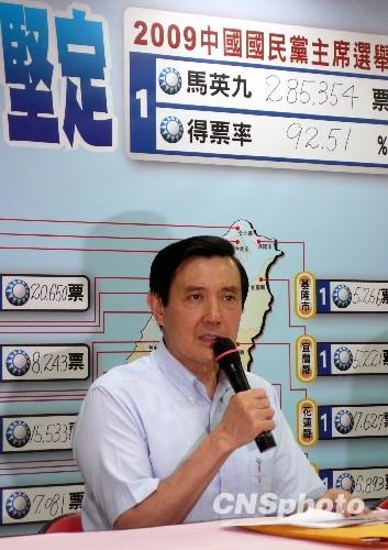 去年在臺灣地區領導人選舉中贏得765萬張選票的馬英九,前天獲得28萬5千張黨員選票,當選國民黨主席。
