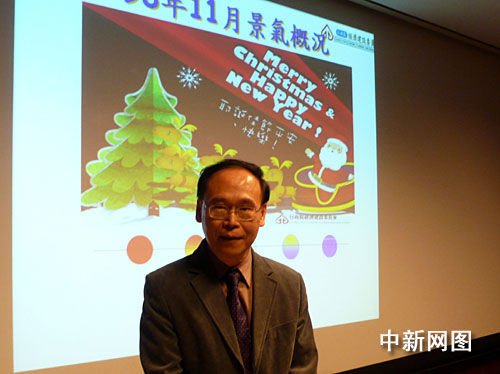 12月28日,臺灣“經建會”舉行記者會介紹最新經濟形勢。會上提供的臺灣多家知名研究機構的預測顯示,臺灣明年的經濟可望由負轉正,應有約4%左右的正增長。圖為“經建會”研究處處長洪瑞彬在會上接受記者提問。(圖片來源:中新社)