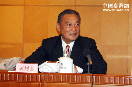 北京聯合大學臺灣研究院名譽院長、前海協會常務副會長唐樹備在研討會上講話。(中國臺灣網 張潔 攝)