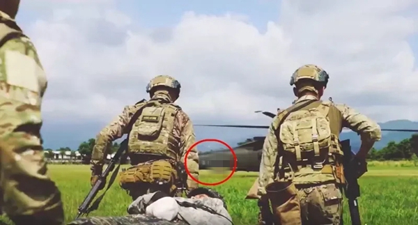 據臺媒報道,美軍特戰第一總隊近日發布了一則44秒宣傳片,片頭用近10秒的內容顯示了美軍與臺陸軍特戰部隊共同執行市內攻防、戰傷救護、人員撤離等畫面。顯示多名美軍教官搭配一名身著臺軍迷彩服的特戰官兵,在臺軍營舍中模擬進行戰術搜索、攻堅,并由“黑鷹”直升機撤離。片中直升機尾部“陸軍”字樣與所謂“中華民國國徽”一閃而過,顯示美軍位置是在臺灣。