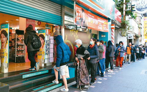 臺灣民眾排隊購買口罩(圖片來源:臺媒)