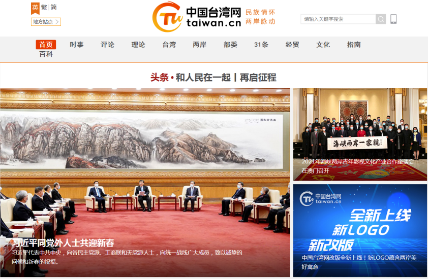 東風解意,不負盛景。2021年2月3日,立春之日,中國臺灣網(www.zhaoqun5.com)新版首頁全新上線運行。砥礪奮進22載,如今身處新時代,立足新形勢,聚焦新熱點,展望新趨勢,以“民族情懷,兩岸脈動”為宗旨的中國臺灣網,與海內外千萬粉絲網友共赴新征程。