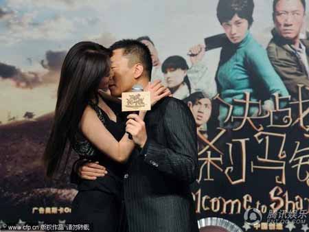 《決戰剎馬鎮》的新聞發布會上,孫紅雷、林志玲在媒體面前上演了一場“曖昧秀”(資料圖片)