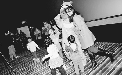 小觀眾和家長與動(dòng)畫片主人公玩偶合影。資料圖片