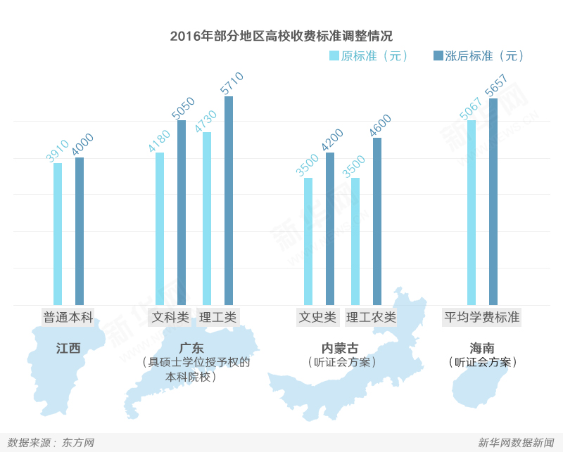 2016年,多地高校學費或將上漲,廣東、江西已確定調價。