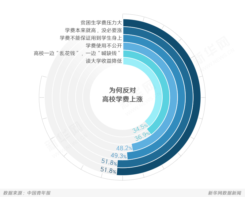 相關調查顯示,76%的受訪者認為當前大學的學費太高,而近半數的受訪者表示僅能接受學費上漲20%以下。也有受訪者稱,學費上漲可以理解,但上漲的原因、資金流向,一定要向學生、家長及社會說明,“上漲的學費要用到學生身上”。