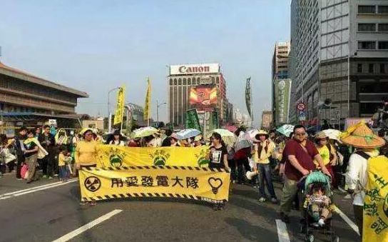 2015年3月14日,臺灣一年一度的反核大游行再次上演。有別于往年“停建核四、核電歸零”,民眾以“告別核電、能源新愿”為訴求,在臺北、臺南以及高雄三地同時展開示威游行。預計有近5萬人會走上街頭。民進黨主席蔡英文下午也現身,提出“2025非核家園”的目標以及具體做法。