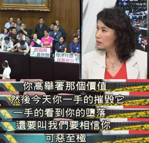 陳風(fēng)馨表示,民進黨自己高喊的民主價值被它一手摧毀。它自己摧毀了整個臺灣的信任基礎(chǔ)之后,接著說我就算用一個我自己的同志來當(dāng)“中選會主委”你們也要相信,這怎么可能?