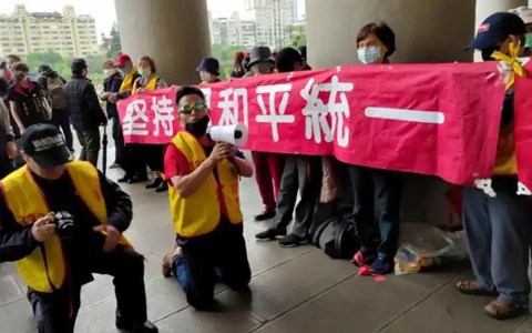 3月12日是孫中山先生逝世95周年的日子,新當選的中國國民黨主席江啟臣,當天一大早率領國民黨黨務主管等人,來到臺北中山紀念館緬懷致意。但最吸引媒體關注的,卻是多位臺灣民眾在幾米外拉布條、喊囗號,希望國民黨支持和平統一,反“臺獨”。