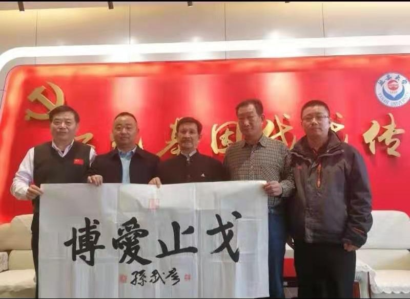 孫武彥博士題贈延安大學 “博愛止戈”