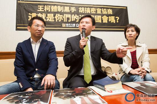 “時代力量”曾因不滿被柯建銘嗆“媽寶”而舉行記者會反擊。(圖片來源:臺灣東森新聞)