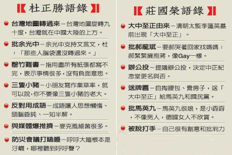 對于自己成為民進(jìn)黨敗選后檢討的“新三寶”,杜正勝、謝志偉、莊國榮昨天各以不同的態(tài)度響應(yīng)。杜僅強(qiáng)調(diào)按程序來做,謝繼續(xù)玩繞口令說“這個(gè)爭議還有爭議”,莊則采取正面迎擊的策略表示自己“勇者無懼”。
