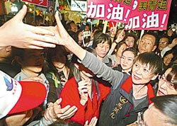 向來低調的馬英九夫人周美青被藍營視為助選要角,圖為2008年她南下高雄瑞豐夜市幫馬拉票(圖片來源:臺灣媒體)