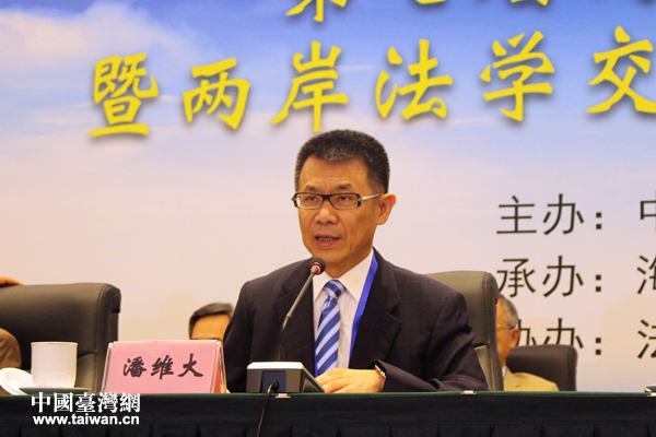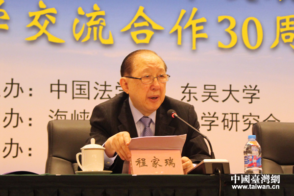 臺灣東吳大學法學院教授、前院長程家瑞進行主題發言。(中國臺灣網 張潔 攝)