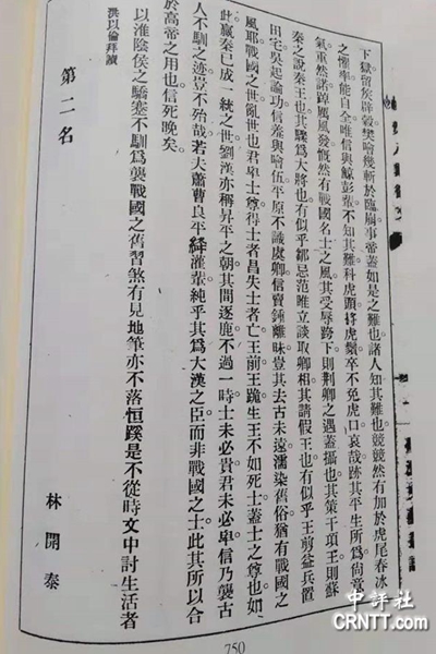 林惠祥《韓信論》第2頁。(圖片來源:香港中評社)