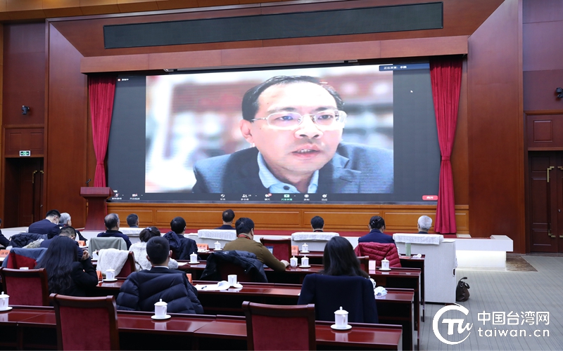 廈門大學(xué)臺(tái)灣研究院院長李鵬通過視頻連線方式進(jìn)行發(fā)言。(中國臺(tái)灣網(wǎng) 尹賽楠 攝)