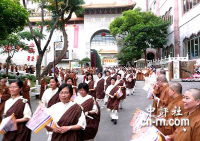 高雄佛光山上千僧人列隊歡迎陳云林會長。