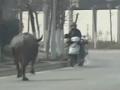 江蘇南通:瘋牛發(fā)飆頂傷路人 特警開槍擊斃