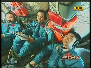 9月27日,中共中央總書記、國家主席、中央軍委主席胡錦濤與順利完成太空行走的航天員進行天地對話。以上為中央電視臺現場直播回放。
