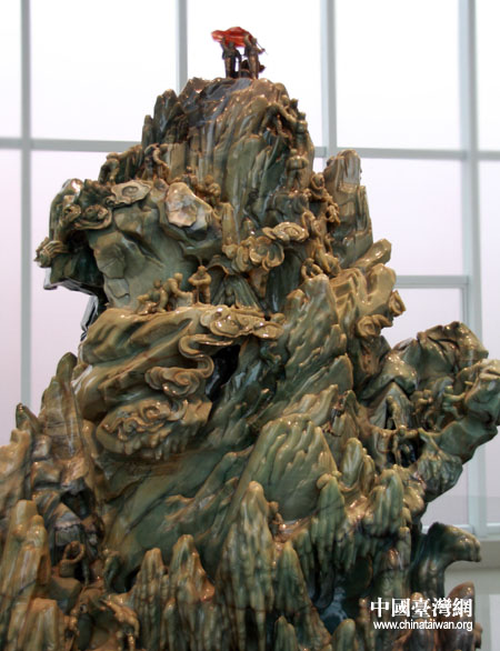 震旦館展示的國(guó)寶級(jí)密玉玉雕“玉山子”。(中國(guó)臺(tái)灣網(wǎng) 鐘寶華 攝)