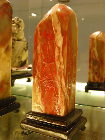 巴林石是一種葉臘石,因產于赤峰市巴林右旗而得名。石質中含有多種化學成份,質地潤澤細膩,斑斕多彩,微呈半透明,硬度適中,脆軟相間,據專家測定,巴林石色澤、成份與我國傳統雕刻原料壽山石、青田石齊名,在韓國、日本、印尼的葉臘石之上,可與寶石、瑪瑙媲美,是雕刻、鑲嵌的最佳原料,是中國三大采石基地之一。以巴林石為基礎建立的巴林奇石館,是巴林石品質和藝術精品的集中展示地,巴林奇石館的主要特點是:一,品種全、花色多。館內陳列著雞血石、黃凍石、牛角凍、羊脂凍、水晶凍、瑪瑙凍、五彩凍、桃花凍、金黃料、紅花石、五彩石、畫石和高嶺石等巴林石優質礦石20多個品種,花色近百種。其中雞血石和畫石最引人注目。二是巴林石作品題材廣泛,造型優美,形象生動。雕件作品有反映草原特點的馬、牛、羊、駝,還有仿古器物,亭閣樓臺,花鳥蟲魚,詩詞書畫等大量精品佳作。三是雕刻手法精湛,繼承傳統,推陳出新。巴林石雕在繼承傳統雕刻藝術的基礎上,借鑒吸收了國畫的工筆白描手法以及玉雕的色彩選擇,骨雕的鏤空技世,發揮鑿、鏟、雕、剔、鉆、拉等工藝精心雕刻,使創造出的作品形體清晰,層次分明,玲瓏剔透,栩栩如生。