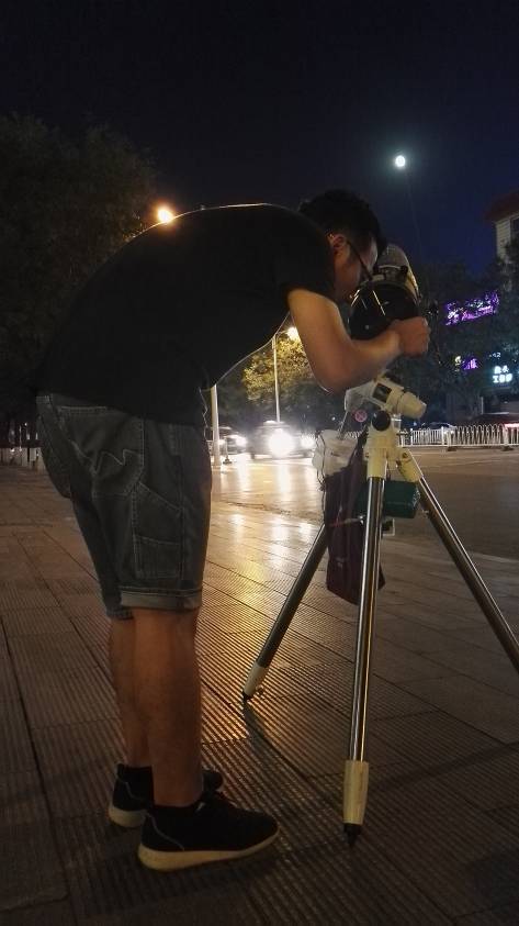 通過天文望遠鏡認真觀看月亮的臺灣同胞。(圖片來源:河南省臺辦)