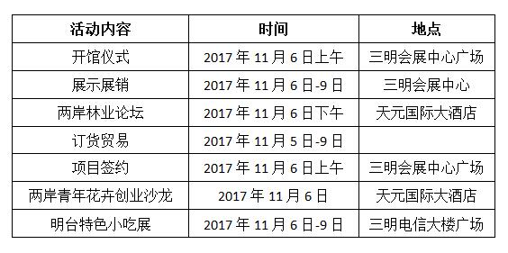 據悉,本屆林博會以“深化林業改革 建設生態文明”為主題,在展示展銷、項目招商、訂貨貿易等方面進一步創新提升,設有:開館儀式、展示展銷、兩岸林業論壇、訂貨貿易及項目簽約、兩岸青年花卉創業沙龍、明臺特色小吃展等主要活動。(福建省臺辦)