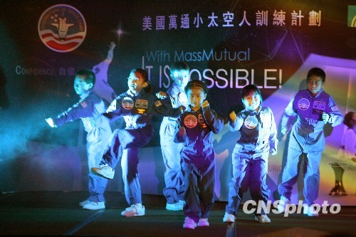 入選“第十一屆美國萬通小太空人” 赴美國亨茨維爾太空訓(xùn)練營受訓(xùn)的六位香港小太空人,學(xué)成歸來受歡迎。八月十九日,他們在主辦機構(gòu)假香港四季酒店舉辦凱旋歸來慶;顒又校硌菁w太空舞展示才藝。 中新社發(fā) 鄭祚聲 攝