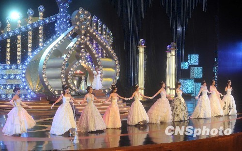 八月二十二日晚,二零零九年香港小姐競選決賽在香港紅磡體育館隆重舉行。十位候選佳麗在風靡全球的女童星Connie Talbot歌聲中出場揭開選美賽夜序幕。 中新社發 鄧慶樂 攝