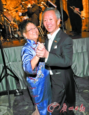 高錕與妻子黃美蕓在慶典舞會(huì)上欣然起舞。