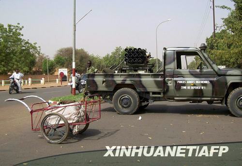 2月19日,在尼日爾首都尼亞美,軍隊車輛在街頭進行道路封鎖。 新華社/法新