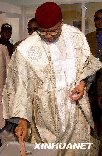 圖為2009年10月20日,尼日爾總統(tǒng)坦賈在首都尼亞美參加議會選舉投票。 新華社發(fā)