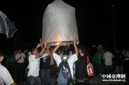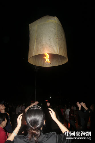 兩岸學(xué)子們齊心協(xié)力放飛孔明燈