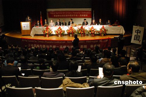 中新社華盛頓十一月十七日電 (記者 邱江波)全球促進(jìn)和平統(tǒng)一高峰論壇今天在華盛頓召開,中美兩國智庫人士、來自全球各地區(qū)的五十七個和平統(tǒng)一促進(jìn)會會長等三百人參加。中國駐美大使周文重、中國國務(wù)院臺辦副主任葉克冬出席并發(fā)表重要演講。