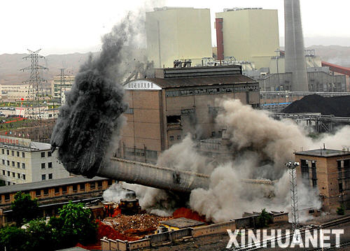 當(dāng)日,寧夏對高耗能、高污染的寧夏英力特中寧電廠兩臺2.5萬千瓦的小火電機組實施關(guān)停爆破。這標(biāo)志著寧夏節(jié)能減排、關(guān)停小火電機組的工作全面展開。新華社記者 李紫恒 攝