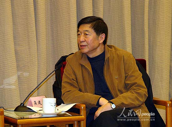 浙江省原省長(zhǎng)、人事部原副部長(zhǎng)萬(wàn)學(xué)遠(yuǎn)在座談會(huì)上發(fā)言。