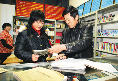甘肅敦煌楊家橋鄉農民在農家書屋借書。 新華社記者 侯東濤攝
