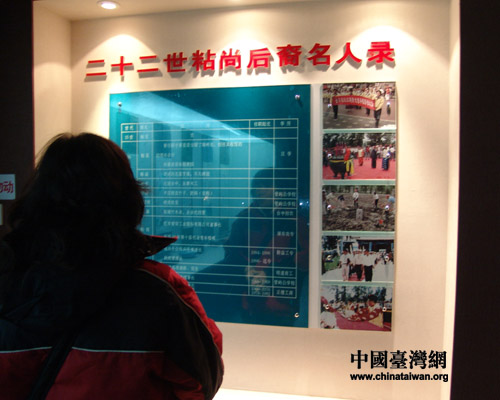 經過“22世粘(nian)尚后裔名人錄”時,兩岸記者驚奇地發現了有關臺灣的粘尚后裔記錄。經工作人員介紹,大家了解到原來閩臺的“粘”姓之祖為金國大將完顏粘翰,現在臺灣彰化鹿港附近的頂粘村及廈粘村,其族譜第一代為金朝之開國大將完顏粘翰。完顏粘翰其子孫由河南遷山東,再從山東到福建泉州輾轉赴臺,現在臺灣粘姓后代有好幾萬人。